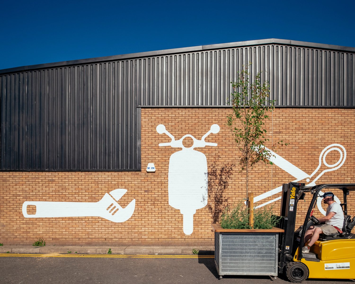 Other improvements to the streetscape include painted flank wall artwork, new playful road markings, new estate wayfinding signage, improvements to fencing and boundaries on the estate – and a new connection to the adjacent Walthamstow Wetlands. A series of movable ‘forklift furniture’ items – including planters and seating that re-use offcuts of stone from another tenant on the estate, Capital Granite – have been introduced to support public-facing activity on the estate by allowing tenants to rearrange their external yard spaces to suit their programming.