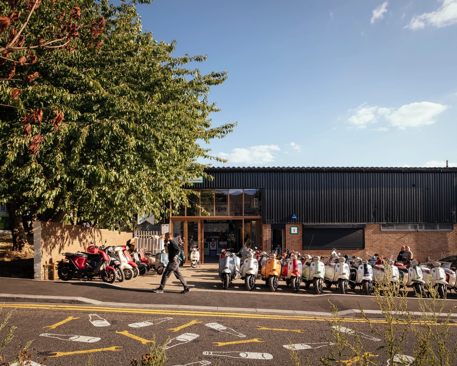 Proposals were developed in conversation with the business owners through group workshops and one-to-one conversations over the course of the last year. Industrial units have received new glazed frontages, wayfinding signage and re-painted facades; while public realm improvements include widening and resurfacing the footways to create an ‘amenity strip’ with space for new sustainable urban drainage, trees and street furniture. A communal canopy structure will provide a covered space for events, plus the addition of pop-up power points in the external yard spaces, an illuminated ‘totem’ sign and an outdoor table and bar structure to support events.