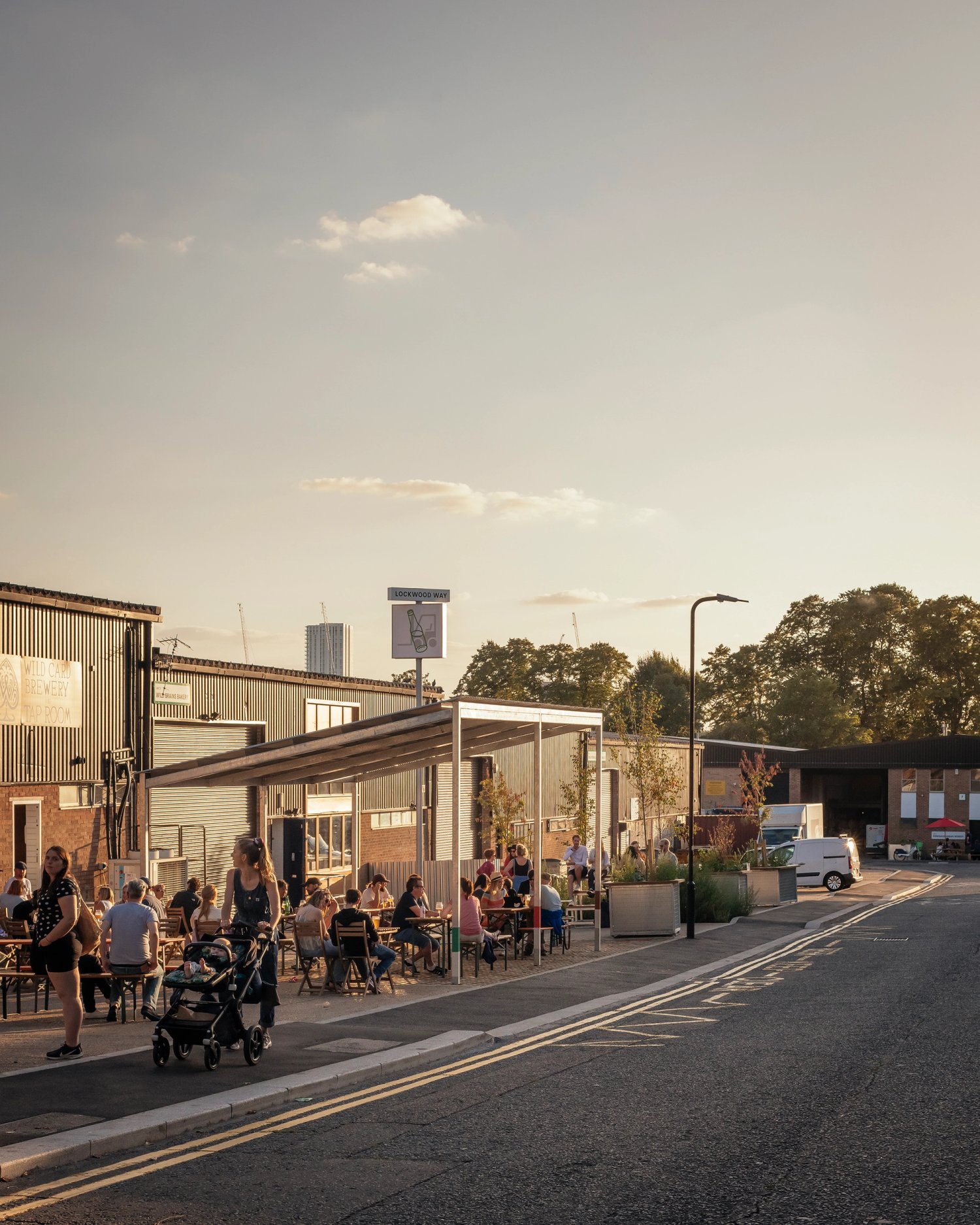 We Made That has completed works to improve the Lockwood Way industrial estate in Blackhorse Lane, transforming the area into a social hub for local businesses and expanding much-loved tap rooms on the Walthamstow Beer Mile. The project includes a canopy structure, movable ‘forklift furniture’ and building frontage improvements to provide a series of safe, sustainable, welcoming, and inclusive spaces to gather and enjoy the surrounding breweries, fabricators and makers.
