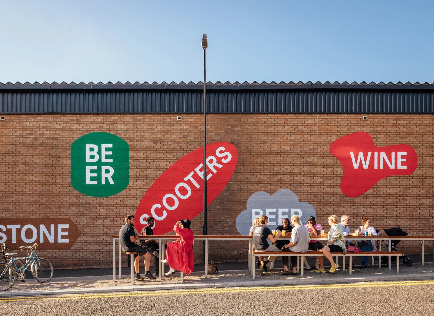 The new elements to the estate are made of robust, industrial materials that celebrate the area’s industrial heritage, and are complemented by a new graphic identity developed by Europa that highlights the flip between the industrial daytime and public evening and beer-led out-of-hours activity.