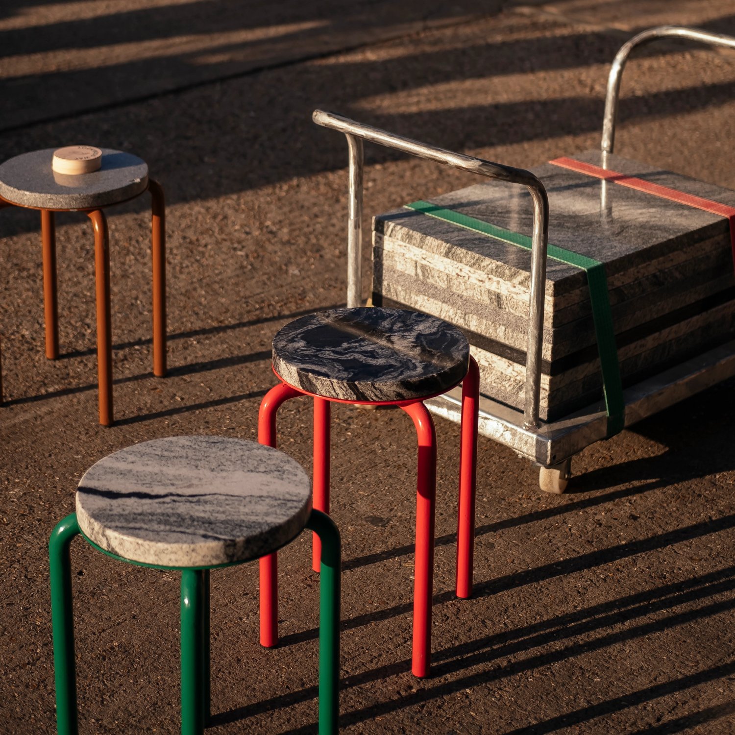 Other improvements to the streetscape include painted flank wall artwork, new playful road markings, new estate wayfinding signage, improvements to fencing and boundaries on the estate – and a new connection to the adjacent Walthamstow Wetlands. A series of movable ‘forklift furniture’ items – including planters and seating that re-use offcuts of stone from another tenant on the estate, Capital Granite – have been introduced to support public-facing activity on the estate by allowing tenants to rearrange their external yard spaces to suit their programming.