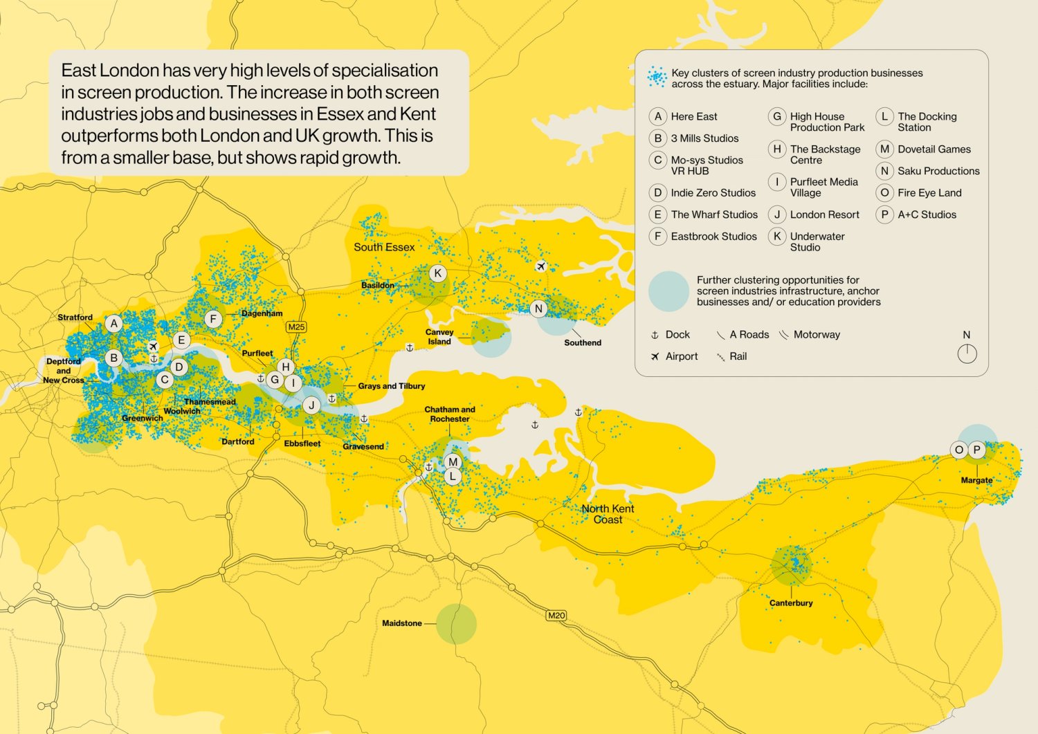 Priorities for the screen industry in the Thames Estuary Production Corridor include: