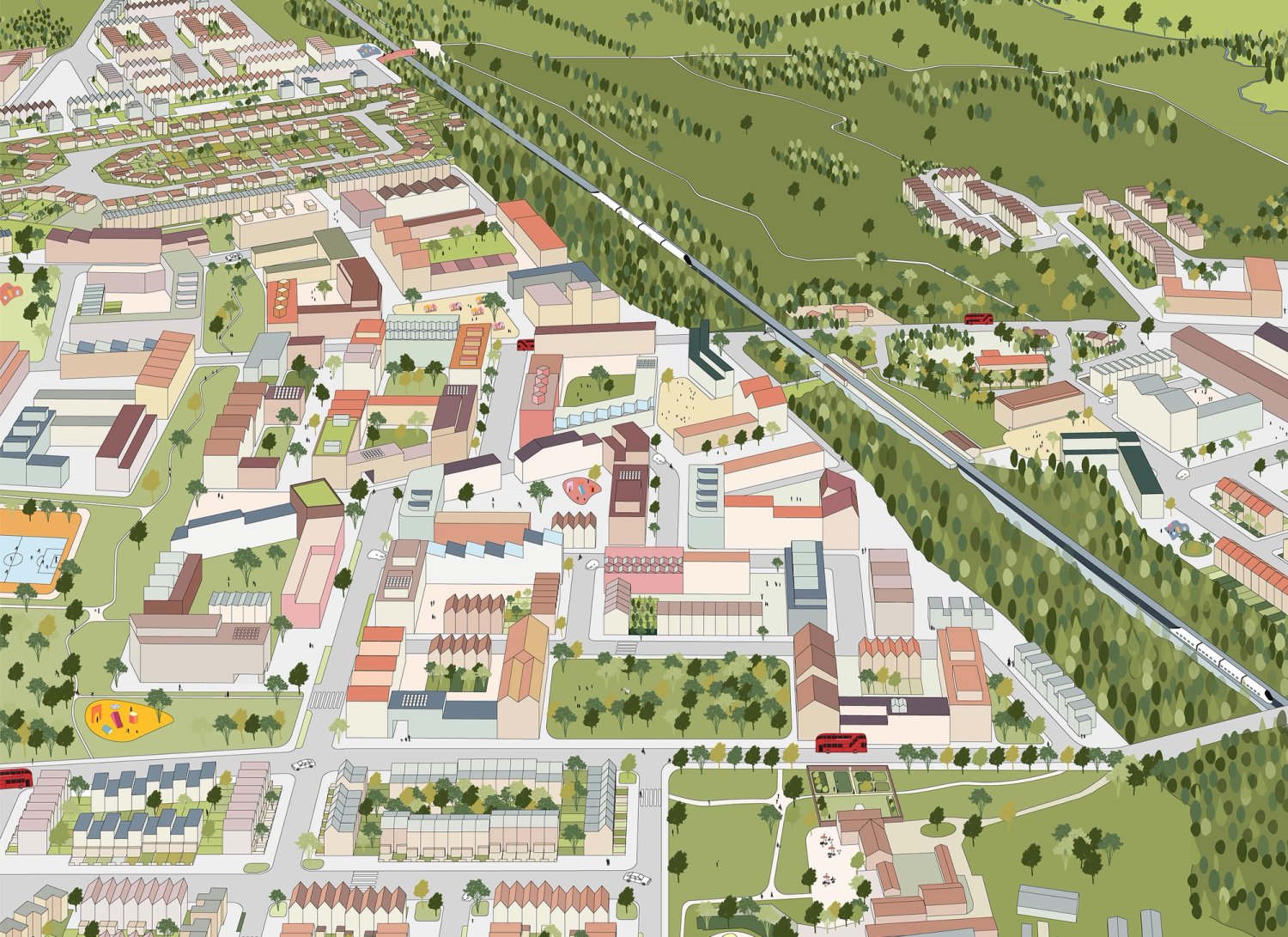 In addition to this ‘grey belt’ land we carefully studied how additional agricultural green belt land could be developed to give the new settlement the critical mass it needed to provide schools, local infrastructure, facilities, and services.
