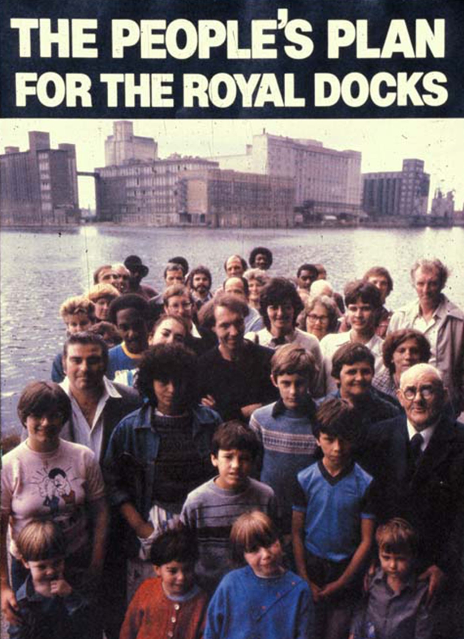 Image credits: Tate & Lyle sugar depot by Philipp Ebeling; Cargo being unloaded in 1949, Newham Archives and Local Studies; The Peoples Plan for the Royal Docks 1983, design by Sandra Buchanan © Docklands Community Poster project.