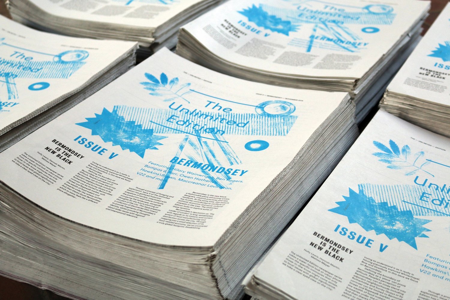 The series began with Issues I, II, III and IV as a result of a commission from the London Borough of Tower Hamlets, Heritage Lottery Fund and English Heritage to produce a series of speculative newspapers about High Street 2012, a key route through East London. The papers were distributed, for free, from dedicated news stands along the street. We Made That have continued The Unlimited Edition series 2016-2018 with issues in Bermondsey, Liverpool and Aarhus in Denmark.