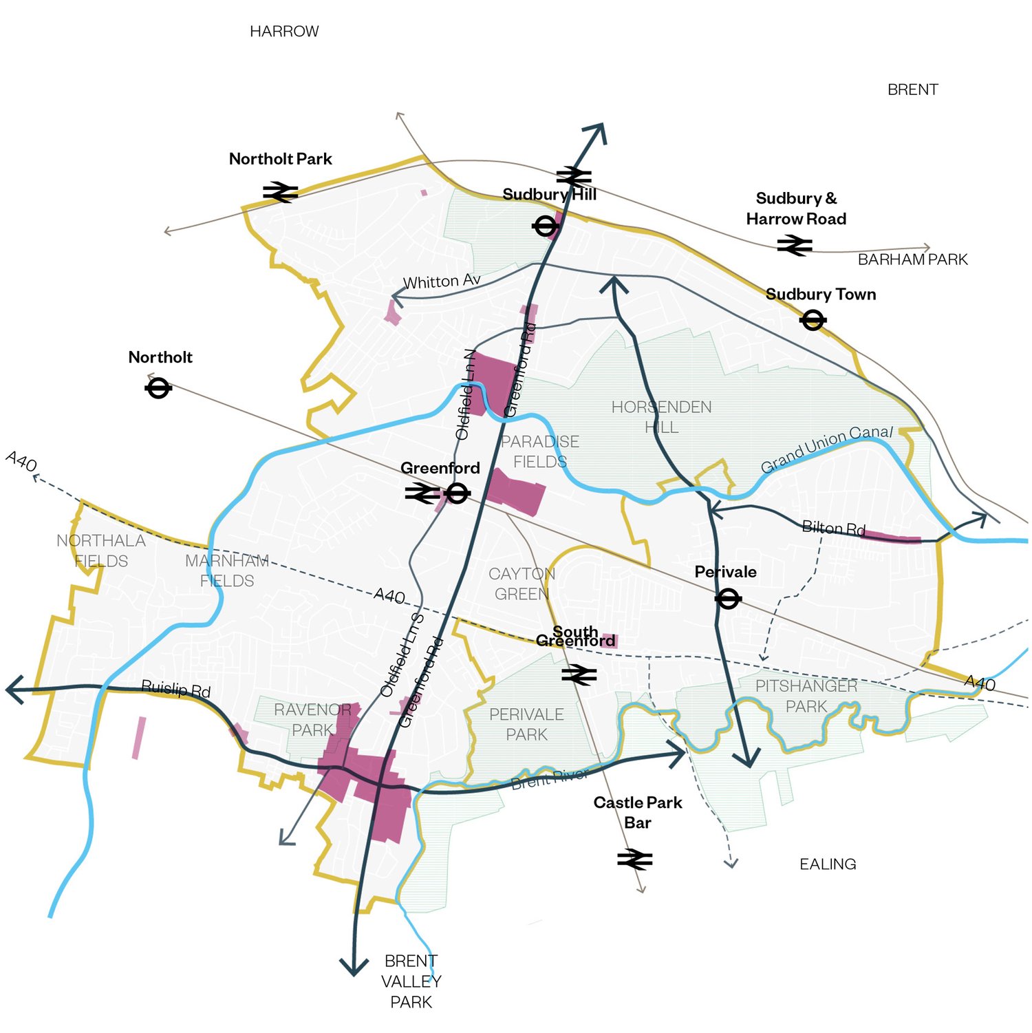 Shaping Greenford & Perivale is a commission brought forward by London Borough of Ealing to develop a Vision and Framework for the two areas. Aiming for strong local renewal and green recovery from Covid-19, the work seeks to unlock opportunities for 20-minute neighbourhoods while informing the new Local Plan. The appointed team is led by We Made That and supported by socio-economic experts PRD, transport planners Urban Movement and quantity surveyors Stockdale.