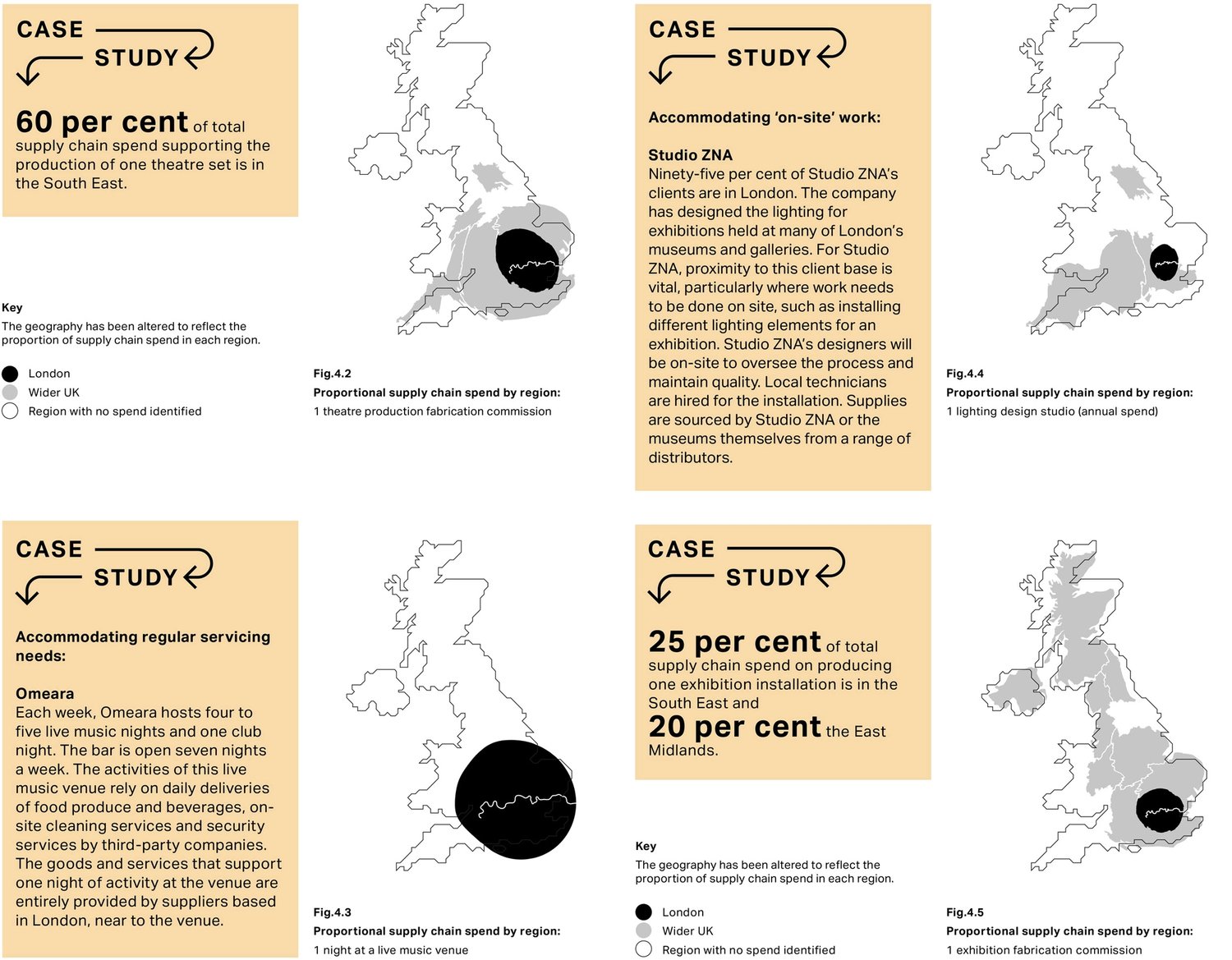 The study includes a number of case studies of places of consumption: National Theatre, Omeara, Sadler’s Wells, and production: Factory Settings, Souvenir Scenic Studios, Mesmer, Martino Gamper Studio and Studio ZNA.