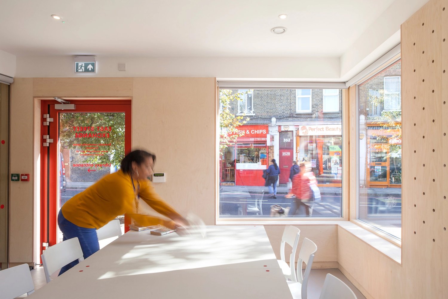 East Street Library - located at a significant civic corner in Southwark - is a well-used public library that was facing under-investment ahead of long-term relocation proposals. It was identified that much more could be achieved at the library with just a little more space. A newly opened extension – East Street Exchange – now allows the library to host a flexible range of new uses. It offers an affordable space for local businesses, entrepreneurs and community groups; provides a much-needed flexible space for groups in the area to meet (bookable even outside of normal library opening hours); and makes space for a homework club and peer-to-peer language assistance.