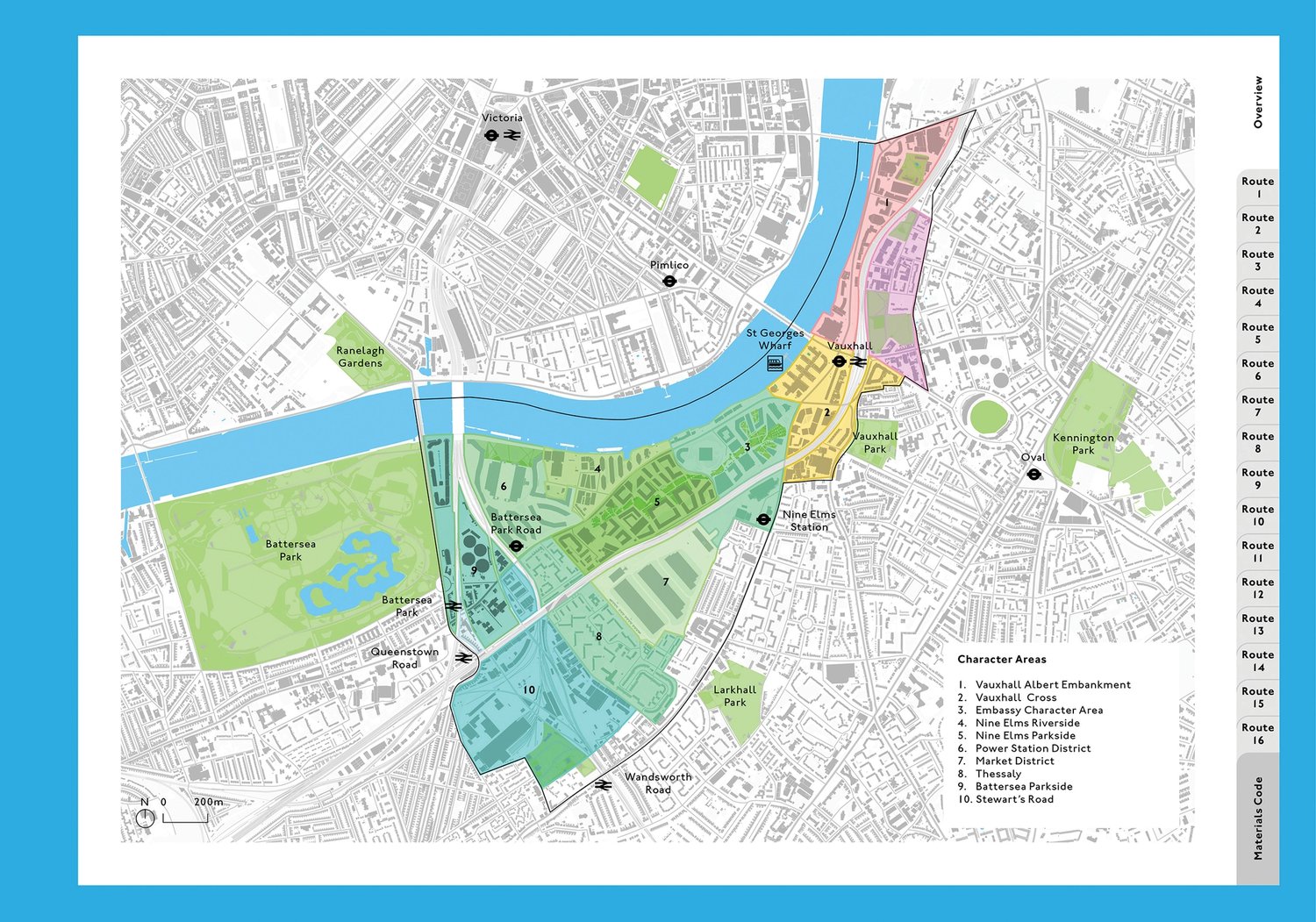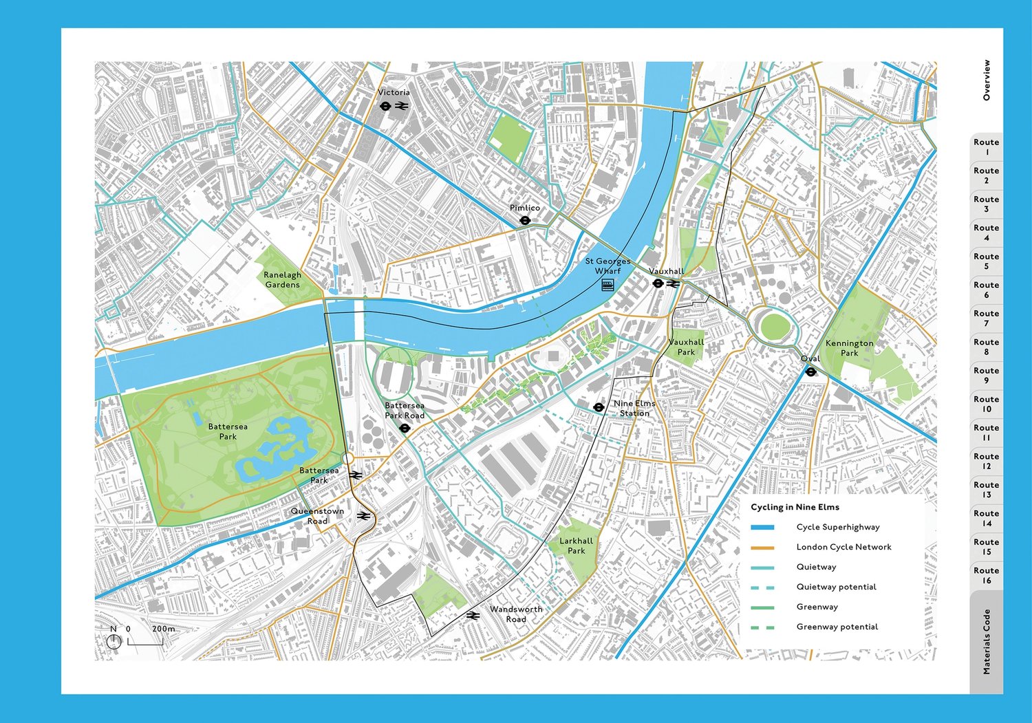 Commissioned by Transport for London, the manual was conceived to be used as a resource to augment existing provision, as well as to inform the creation of new routes. Sixteen interlinked routes were developed into a cohesive cycle network. The Projects Manual identifies a series of individual projects which will, in sum, deliver the overarching aim of attractive and integrated cycling provision across the 195-hectare Nine Elms on the South Bank Opportunity Area.
