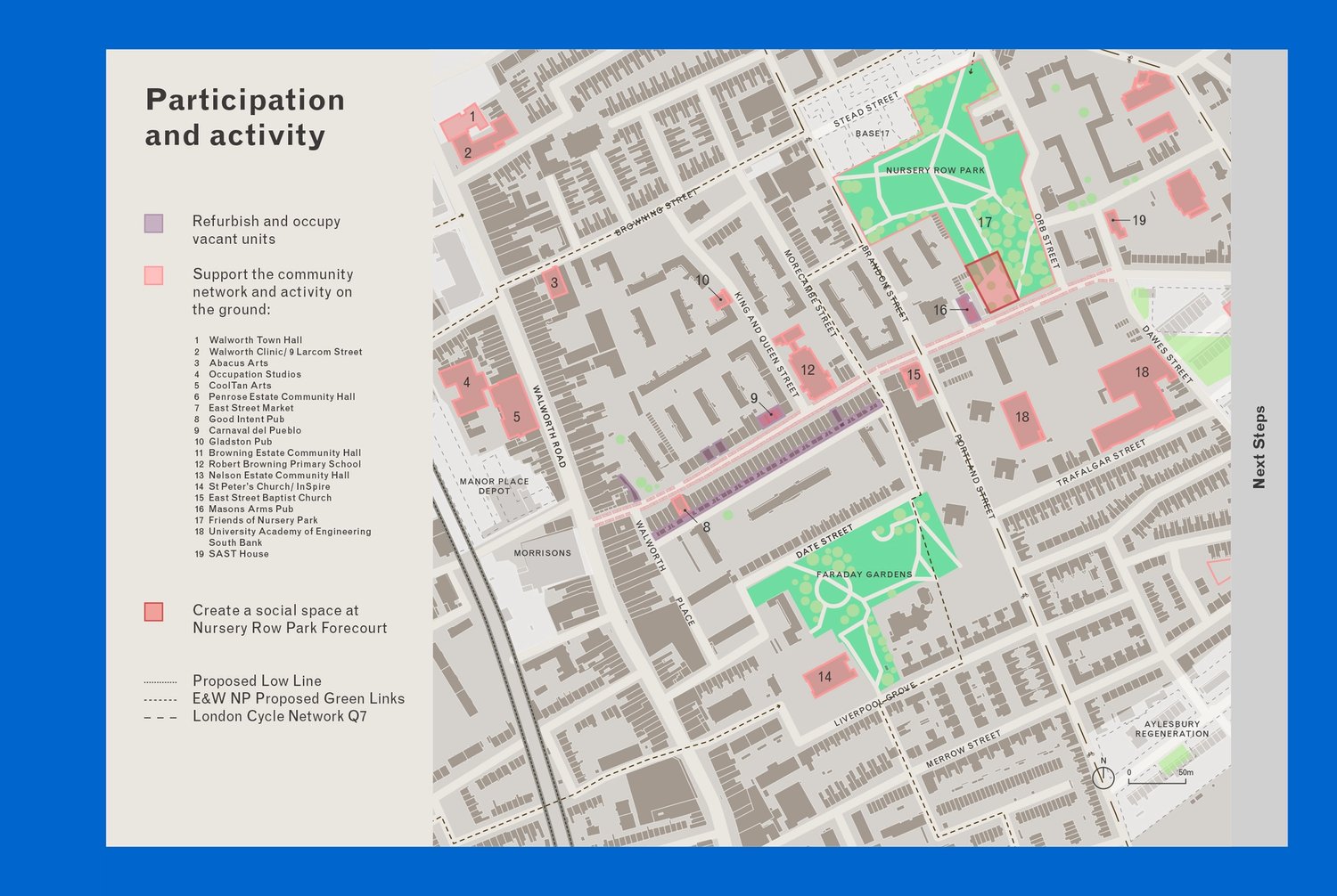 In combination they form a cohesive strategy and vision for public spaces and community assets in Walworth, with the strategy enabling the local community to get involved as partners and take responsibility for the ongoing delivery, programming and legacy of the identified projects.